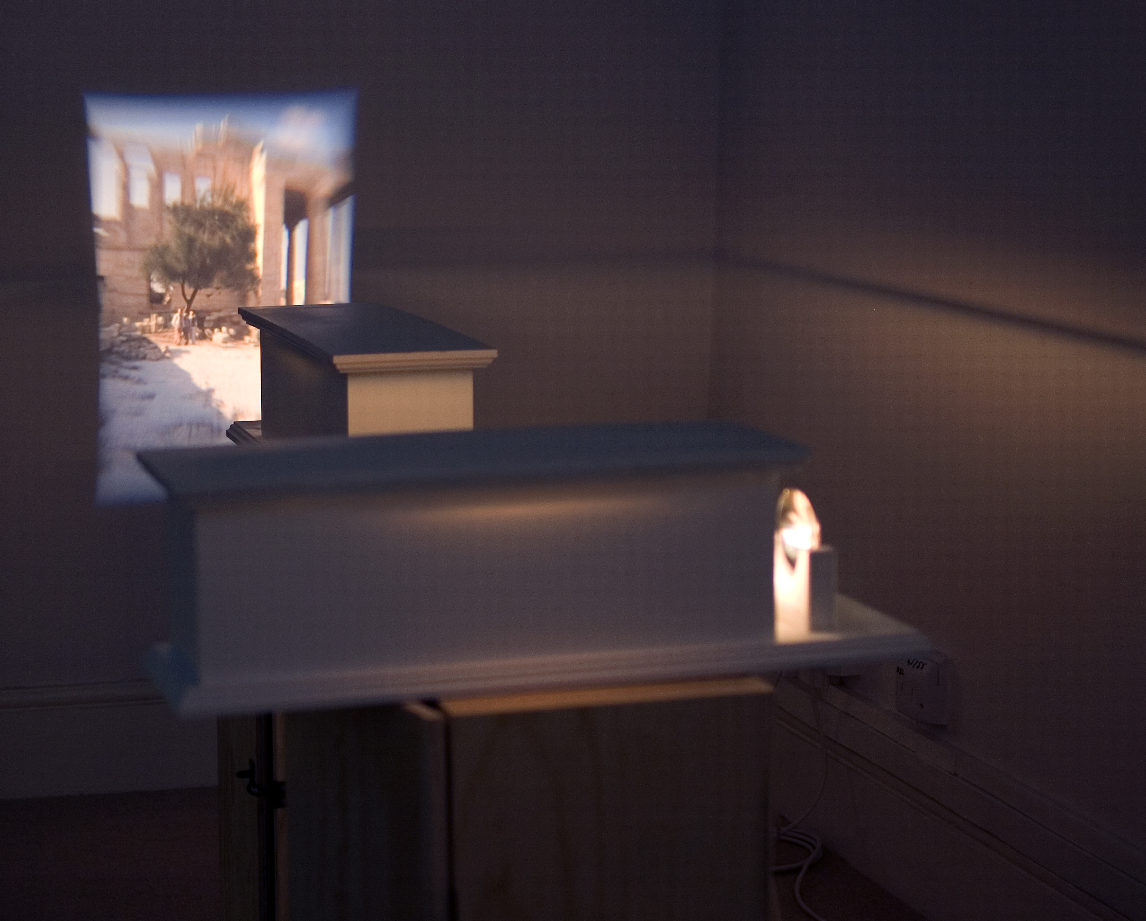Beginning at NCAD in the late 1990s, through painting I discovered that photography and installation. This understanding deepened through working with sculptor Michael Warren, an experience that profoundly shaped my appreciation for the subtle interplay of light, form, and human presence within environments both natural and built. My MFA in Art in the Digital World (2004-2006) crystallised this approach. In *Space and Place* and *Genius Loci*, I explored the Acropolis not as a tourist destination but as a site of layered meanings, social, historical, personal. Using handmade projectors whose proportions referenced Greek architecture, I created installations where moving images acted on each other through calculated and chance juxtapositions. Light became the constant element, the transformative force that activated space and created thresholds between seen and unseen worlds.